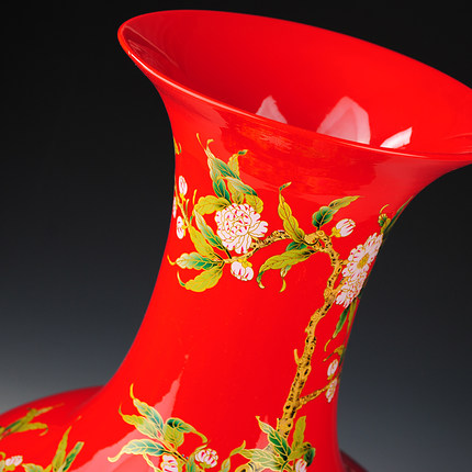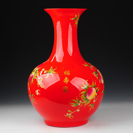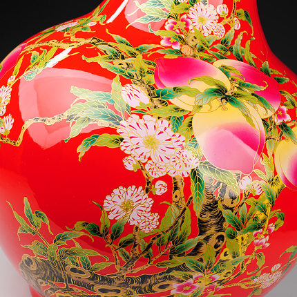 Jahrriesnge big red peach vase cna1043 Porcelain