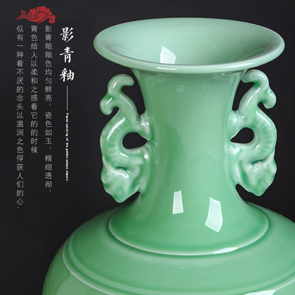 Creative Shadow Celadon Binaural Vase Flower Arrangement Ceramics