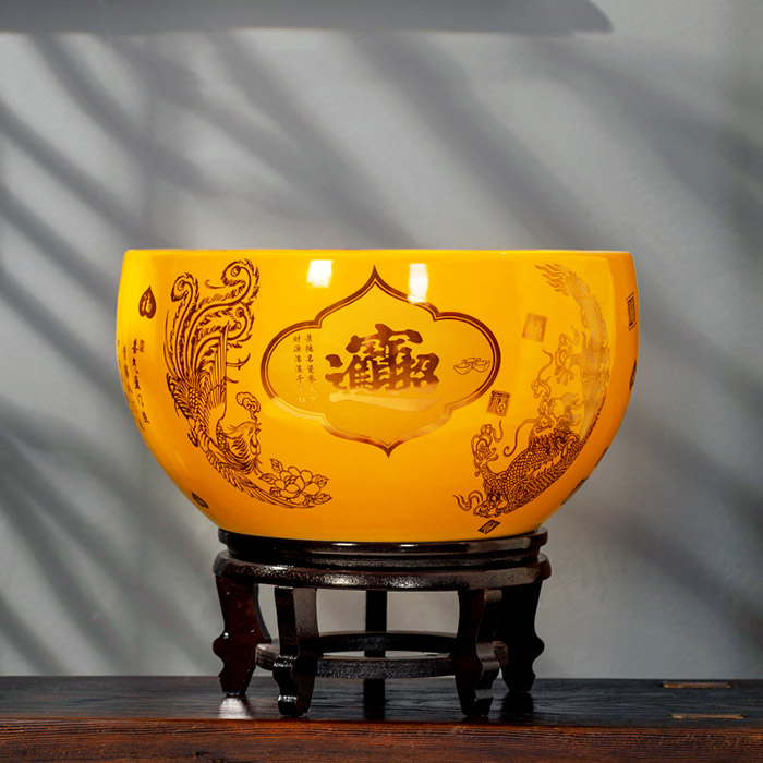 Small Chinese water lily ceramic bowl porcelain gold fish sink