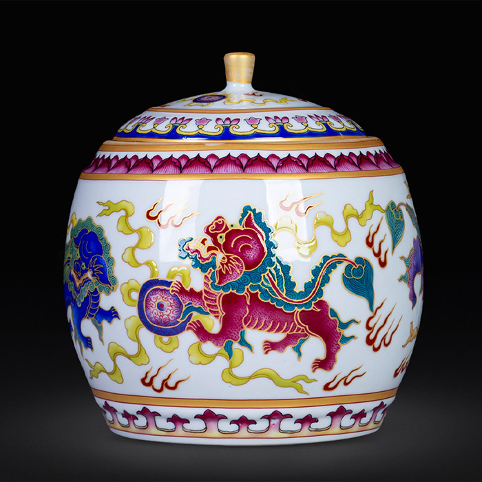 Enamel Lion Hydrangea Sealed Retro Storage Ceramic Jar 500g container