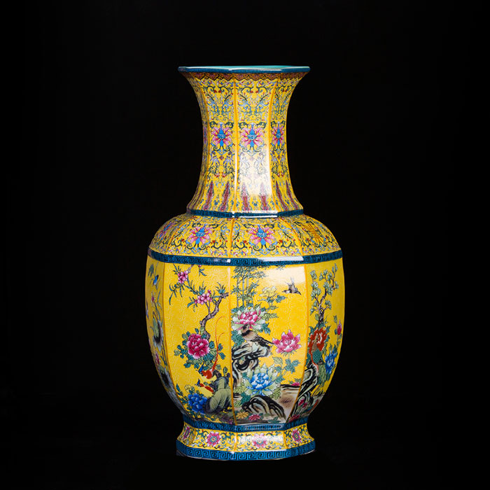 Vintage qing dynasty qian long large yellow decorative ceramic vases