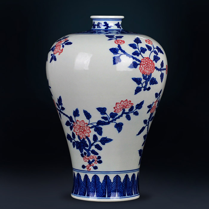 Jingdezhen blue and white underglaze red mermaid ceramic flower vase