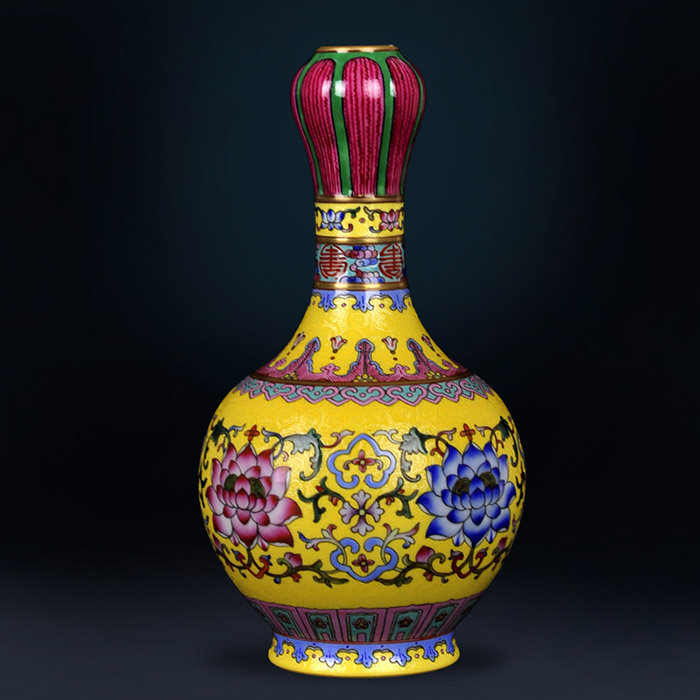 Vintage qing qianlong pastel grilled garlic shape ceramic vase home