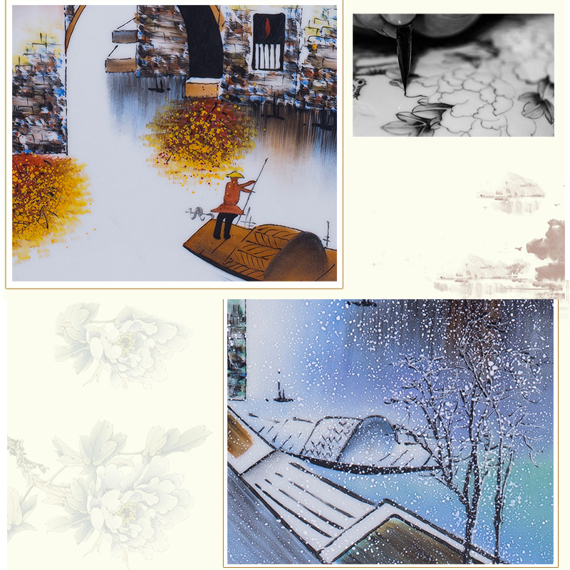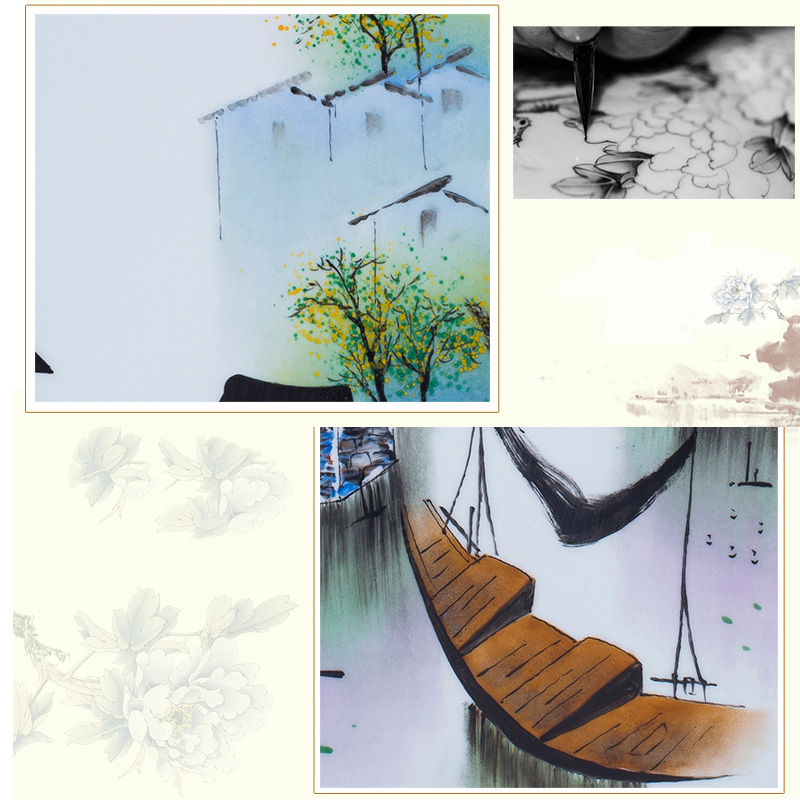 Jiangnan Town porcelain plate painting hanging sofa background wall