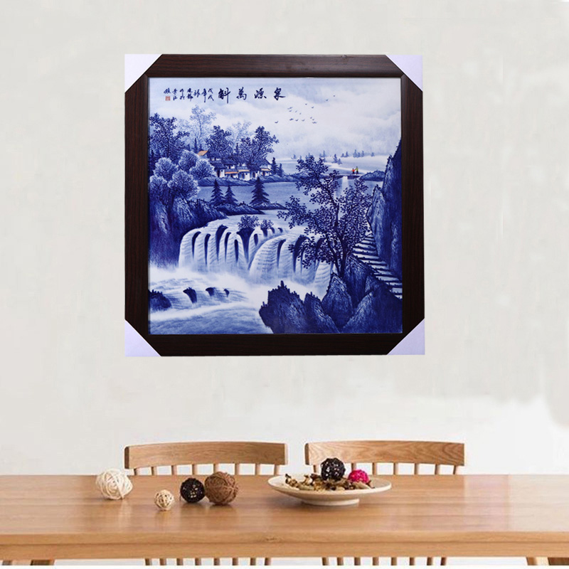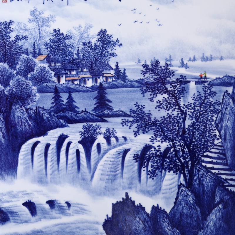 Hand-painted blue and white landscape ceramic hanging painting plate