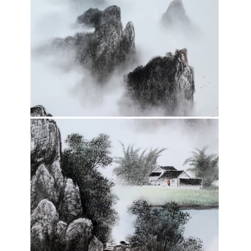 Hand-painted landscape porcelain plate painting living room murals