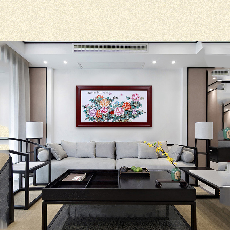 Jingdezhen hand-painted peony flower ceramic plate painting wall