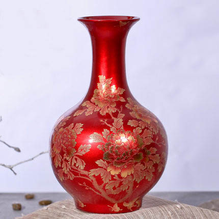 China golden flower with red crystal glazed ceramic ornamental vase
