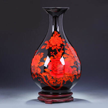 Black chinese Handmade Decorative crystal glazed flower ceramic vase