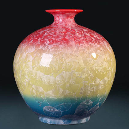Big red yellow and blue crystal glazed ceramics flower vase from china