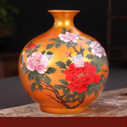 Pomegranate shape golden color glazed ceramic vase flower arrangement