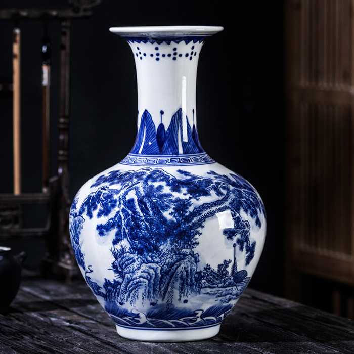 Jingdezhen hand painted blue and white porcelain flower vase landscape