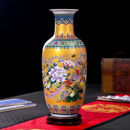 The characteristics of enamel porcelain are fine and moist porcelain, bright colors, and meticulous workmanship. Production is extremely time-consuming.