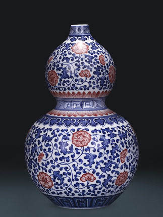 Vintage qing dynasty qian long blue and white glazed red ceramics vase
