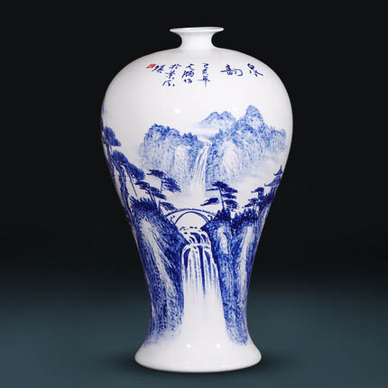 Master hand-painted tree landscape mermaid shape ceramic vase
