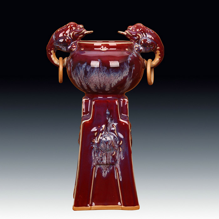 Jun porcelain official kiln red double eared golden toad ceramic vase