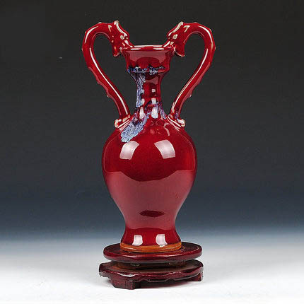 Dragon Head Double Ear Jun Porcelain Small Vase Decoration