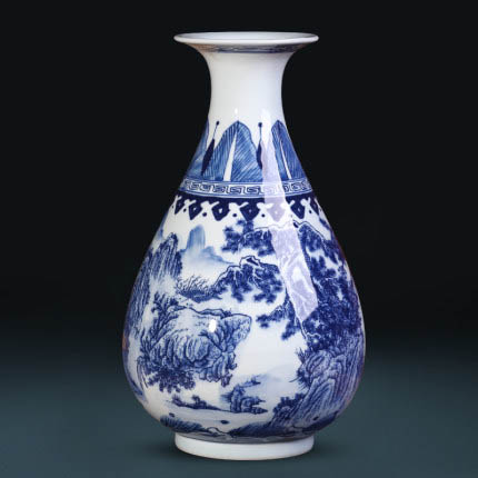 Chinese landscape painting blue and white porcelain flower vases