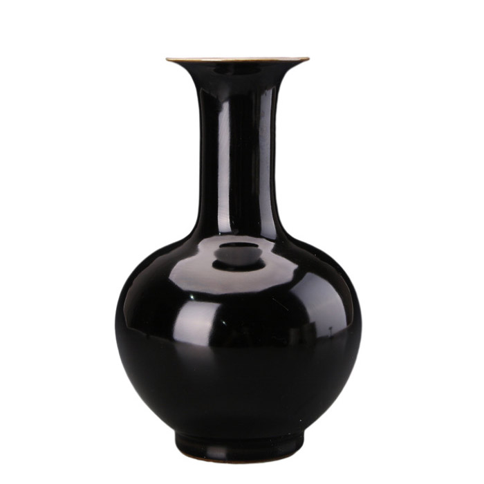 Vintage qing dynasty Yong zheng black glazed asian oriental table vase