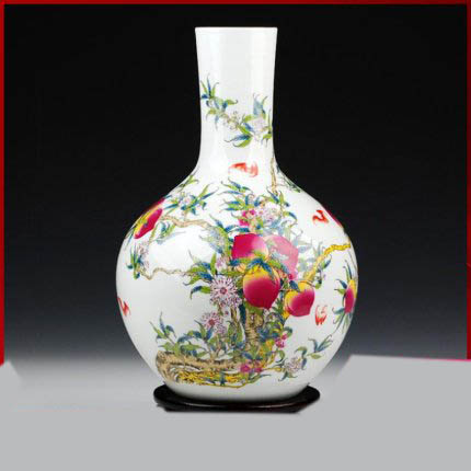 Vintage celestial sphere shape peaches pattern ceramic ornamental vase