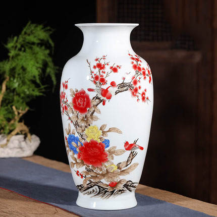 Jingdezhen fishtail shape ceramic vase with birds and flowers home