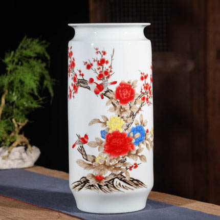 Jingdezhen bucket shape ceramic vase with birds and flowers home