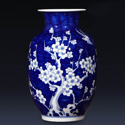 Plum pattern winter melon shape blue and white china ceramic vase