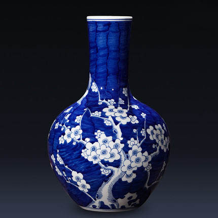 Plum pattern celestial sphere shape blue and white china ceramic vase