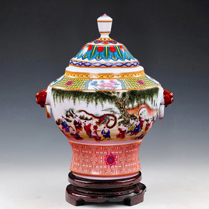 Chinese enamel storage candy pottery jar pot and home decorations