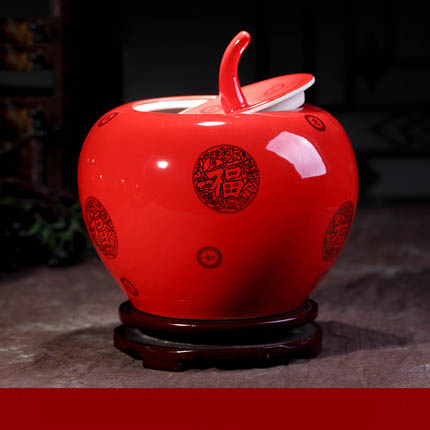 Apple Shaped Good Fortune red mini good lucky Ceramic Storage Jar