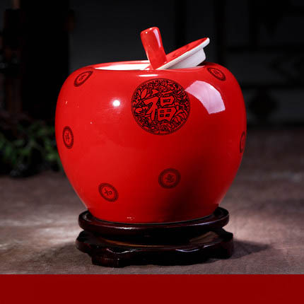 Apple Shaped Good Lucky bid red Ceramic Storage Jar