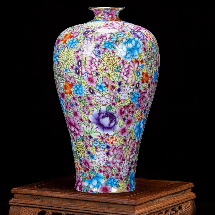 Vintage Qing dynasty multi-flowers mermaid shape ceramic vase
