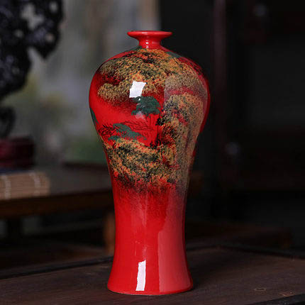 Jahrriesnge red landscape vase cna1356 Porcelain