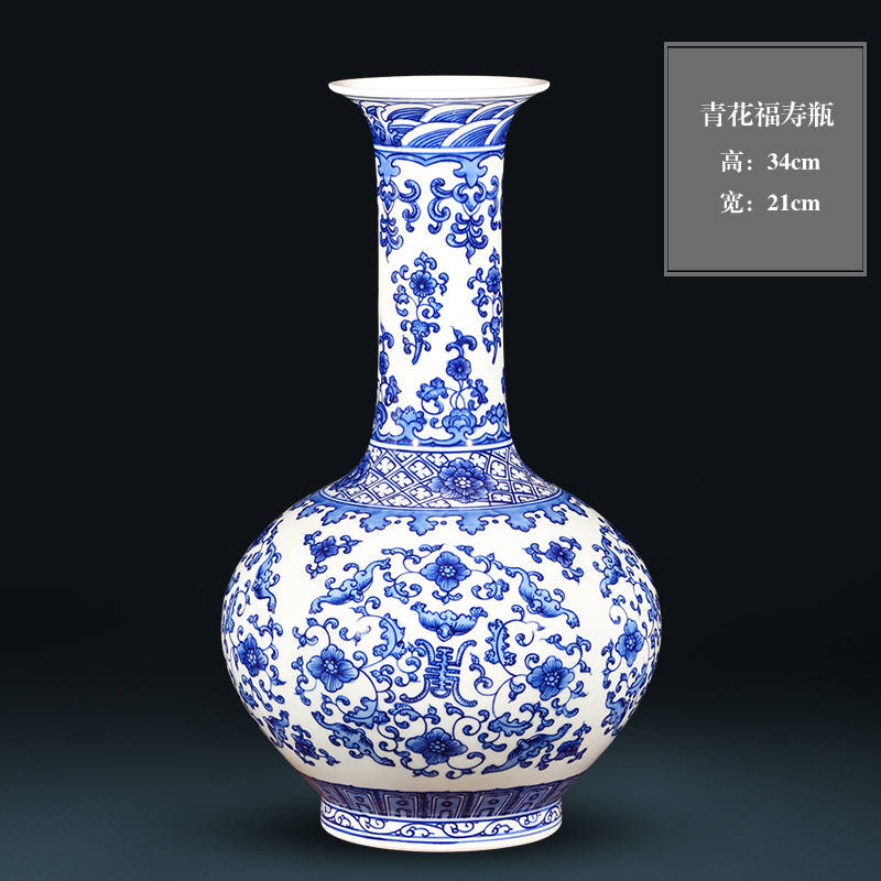 Blue and White Porcelain Happiness and Longevity Ceramic Vase