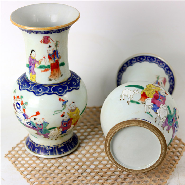 Chinese tongzhi reign qing dynasty famille rose ceramic vase figure on