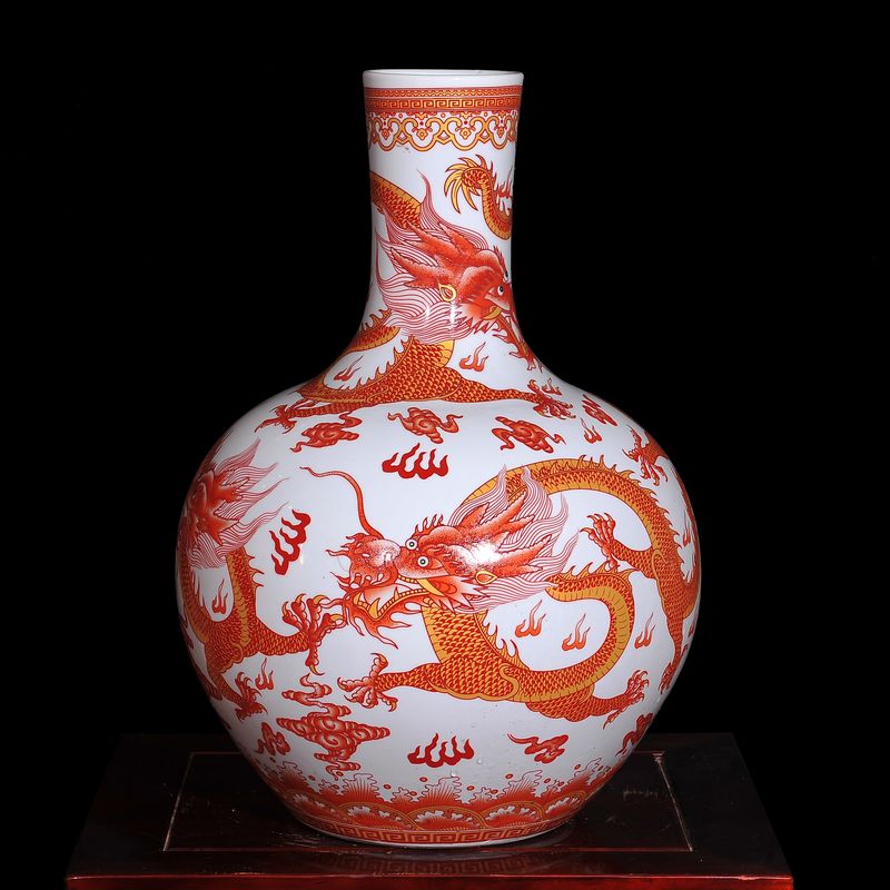 Large pastel floor celestial ceramic vase with dragon for living room