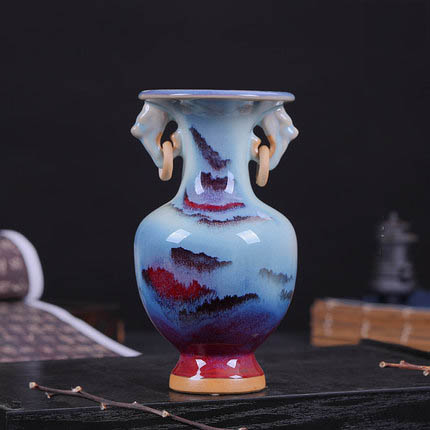 Jingdezhen Jun Porcelain Landscape Painting two ears Ceramic Vase