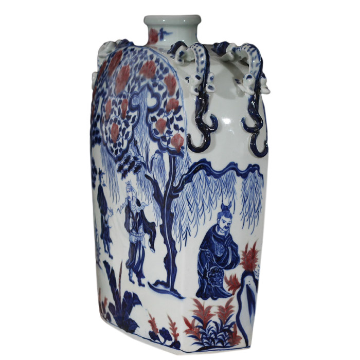 Vintage Yuan Dynasty blue and white glazed red flat pot vases
