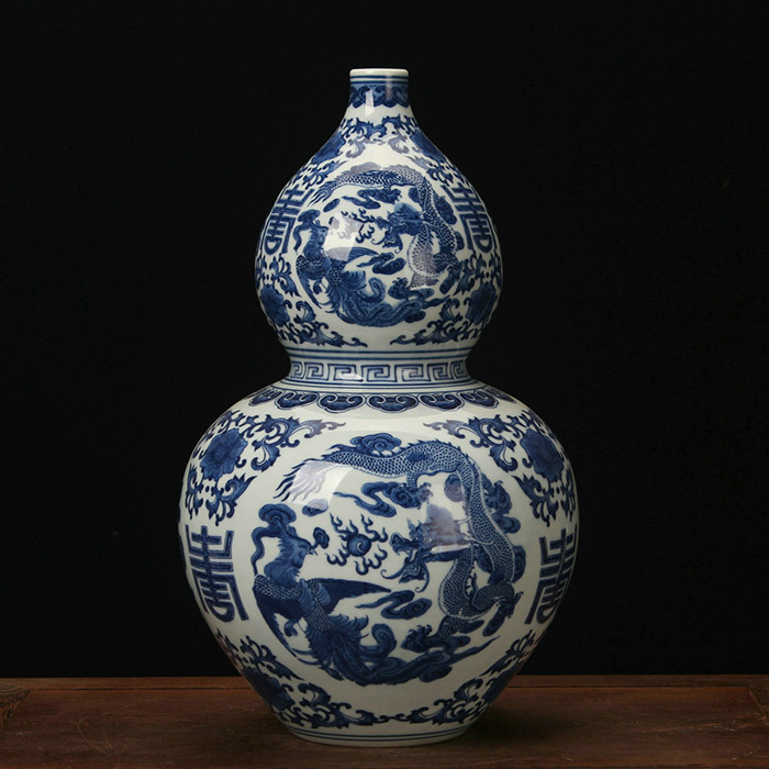 Hand painted dragon and phoenix gourd chinese ceramic vase