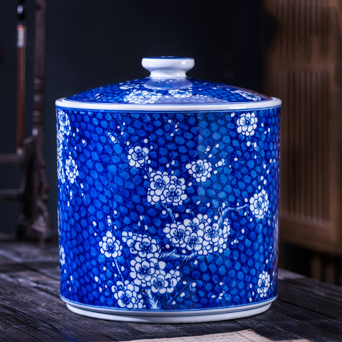 Jingdezhen large blue ceramic sealed tea cans storage pots storage jar