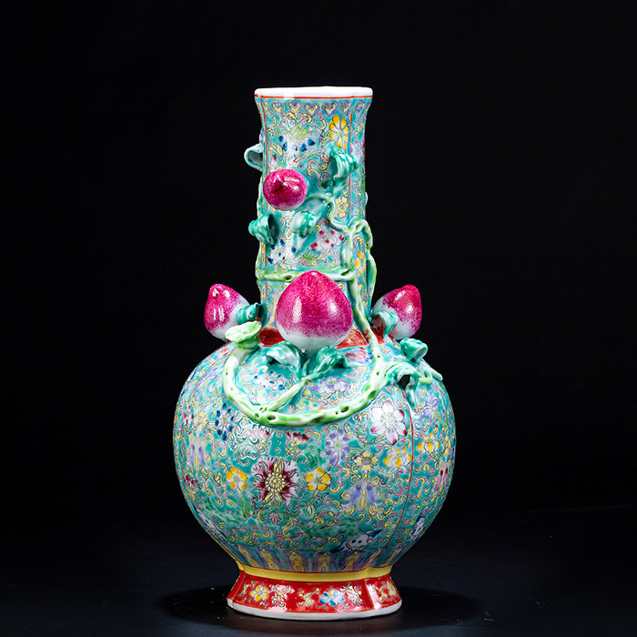 Vintage Jingdezhen five peaches ceramic vase with long life meaning