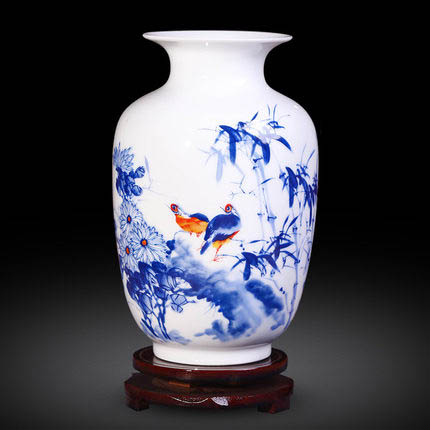 Winter melon shape flowers and birds and bamboo patterned ceramic vase