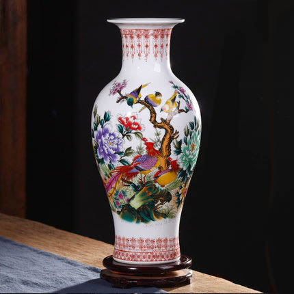 Small fishtail shape phoenixes and flowers pattern chinese vase