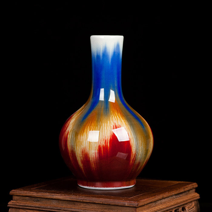Vintage celestial sphere kiln with cracked colorful glaze ceramic vase