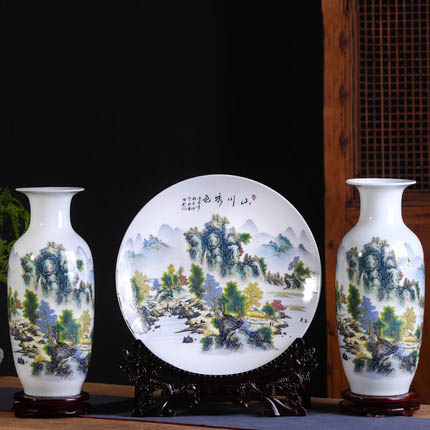 Chinese big mountains and rivers scenery ceramic vases three-piece set
