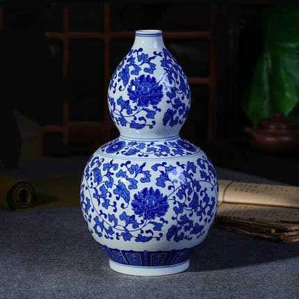 Ceramic Blue and White Porcelain tangled lotus gourd Shape Vase
