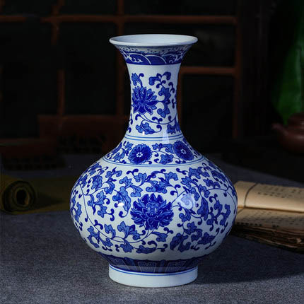 Ceramic Blue and White Porcelain tangled lotus Lantern shape Vase
