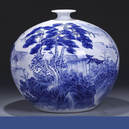 Master hand-painted countryside blue and white porcelain vase