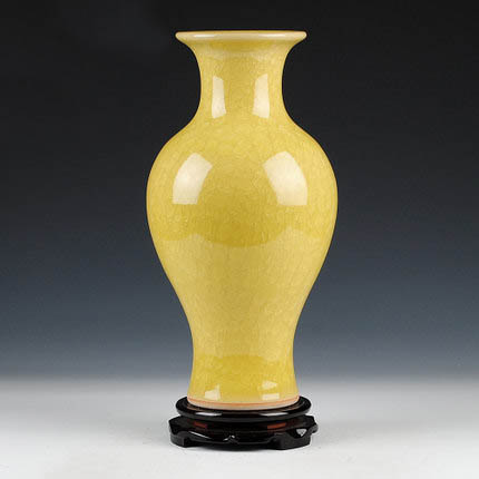 Jahrriesnge yellow ice cube cracked gourd vase cna0733 Porcelain