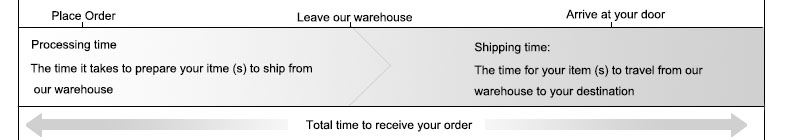 2. Shipping Method: Delivery time varies with shipping method. Time in transit varies depending on where you're located and where your package is coming from. You can also check the follow form for more detail about the delivery time:| Shipping Method | Delivery Time | Area |